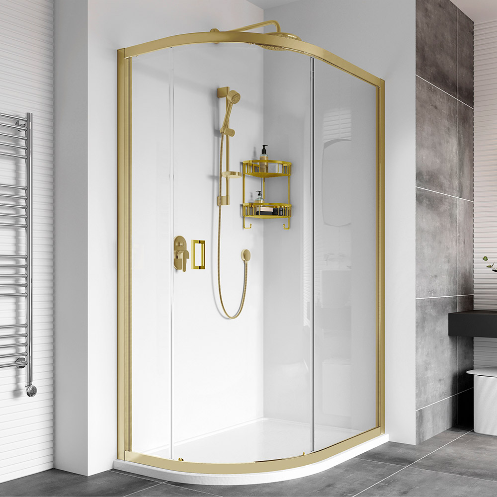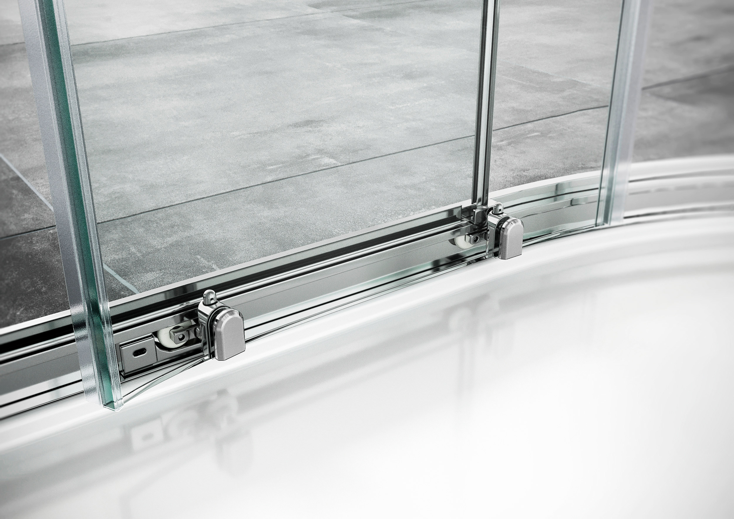 The Curved Shower Enclosure stands majestically at a height of 1950mm with toughened 8mm thick safety glass. A contemporary feature of the One Door Quad Enclosure is the chromed brass ergonomic handle, which has a curved underside for easy operation. The weight of the 8mm thick glass and smooth running roller bearings provides an effortless action sliding door. The smooth running roller bearings incorporate a ‘quick release’ door system for easy access cleaning.