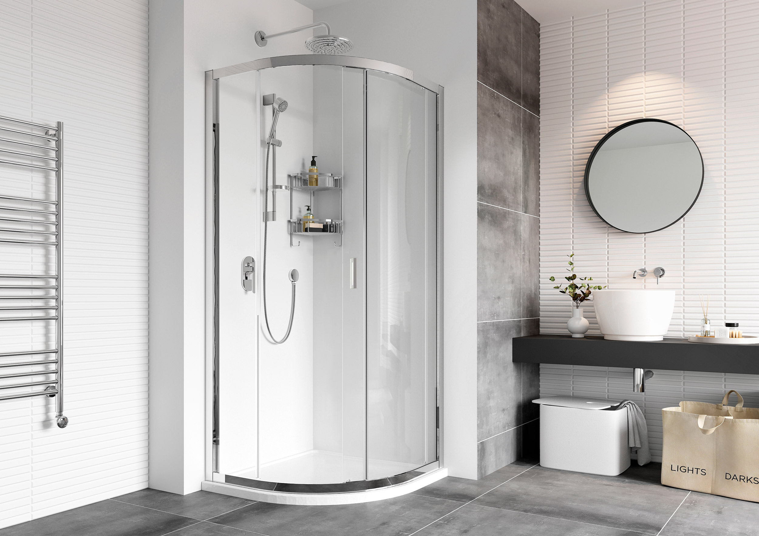 The Haven8 One Door Quadrant is an ideal showering solution when side entry is more practical for the smaller bathroom.