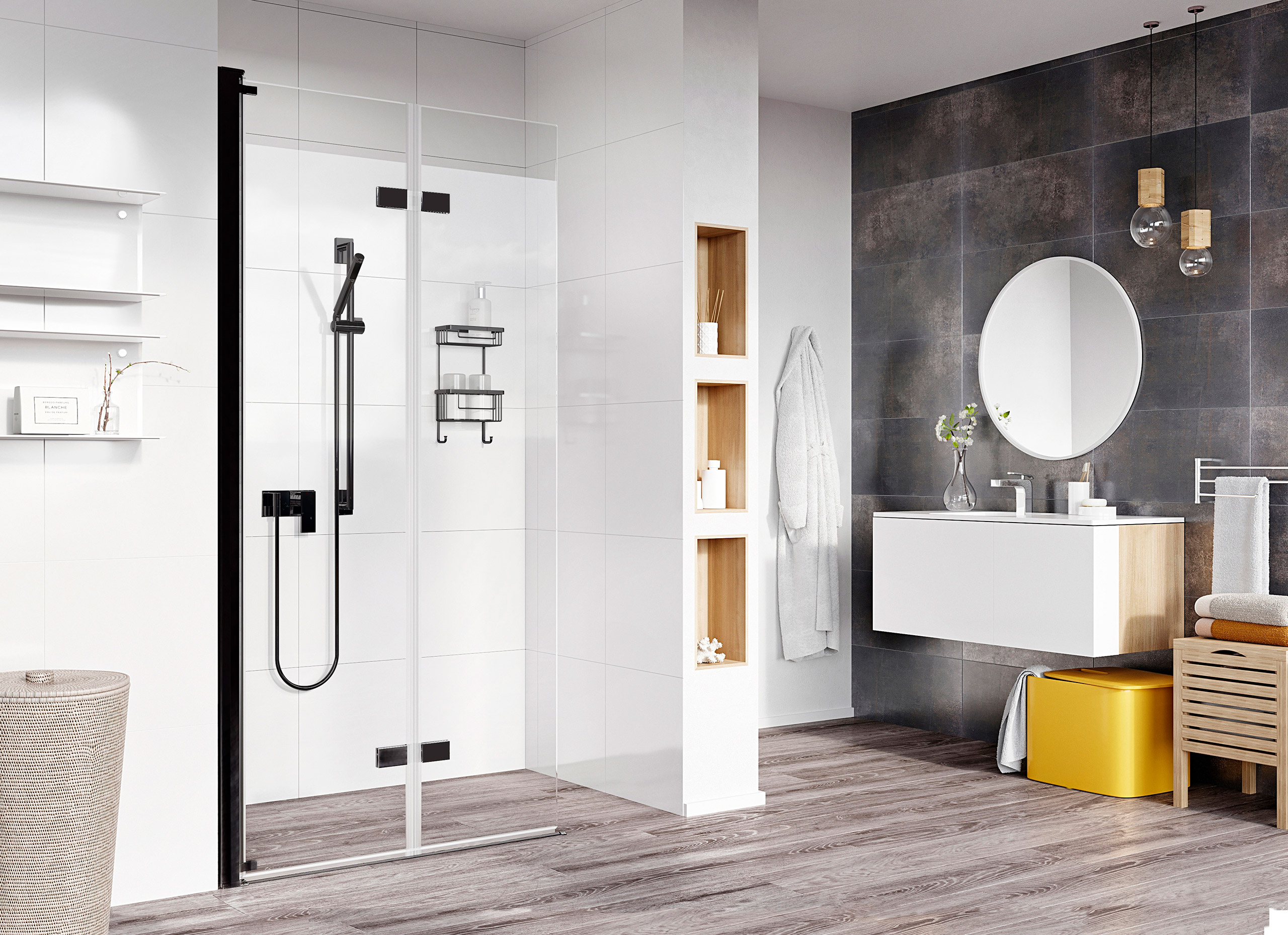 Add a completely inclusive showering solution to your bathroom with these Bi-Fold Panels. They pivot outwards and straight back to the wall for a large and open space to enter the showering area. It is a minimal design with a frameless look, presenting inclusivity for all users complete level access entry. There is no top rail on the Innov8 Enclosures, which presents the flexibility of no height restriction. There are various size options and configurations available to fit a variety of bathroom sizes and spaces.