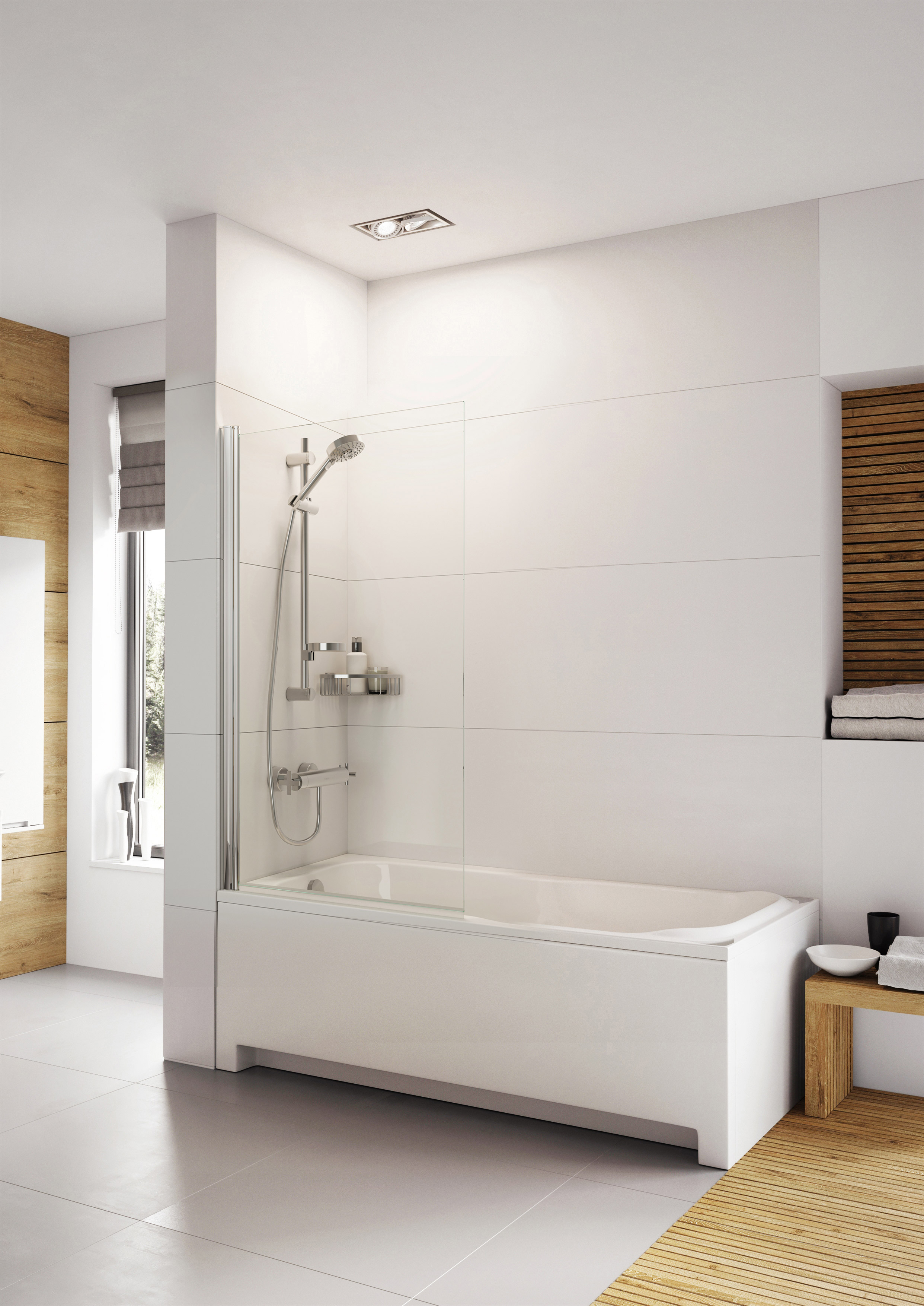The Haven 6 Standard Bath Screen presents clean and uncomplicated lines, offering a sleek and stylish over the bath showering solution. Its styling is in line with modern trends and the screen rotates 180° for access when entering the showering area and to make cleaning your bath simple. The Standard Pivoting Bath Screen is available in Polished Chrome and Matt Black.